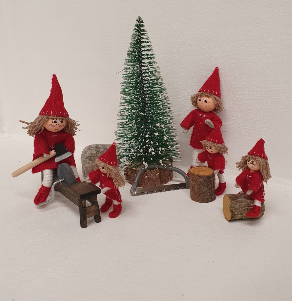 Ski og staver til nisser. 3D-printet i PLA. Passer til liten nisse vi lager på 6 cm.