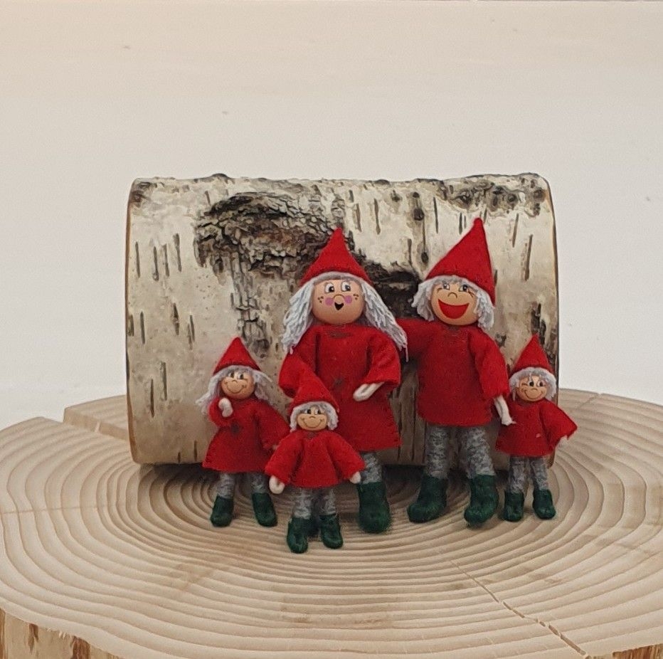 Håndlaget miniatyr nisse familie på 5