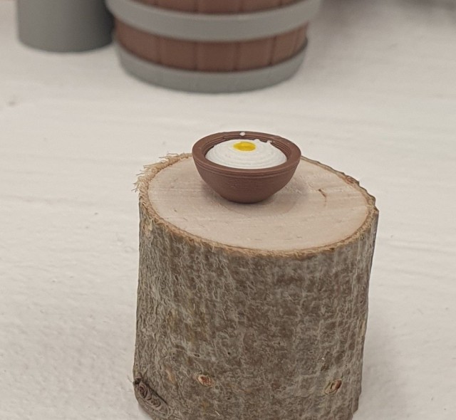 Miniatyr grøtskål 3D-printet i PLA - perfekt til nissehus!