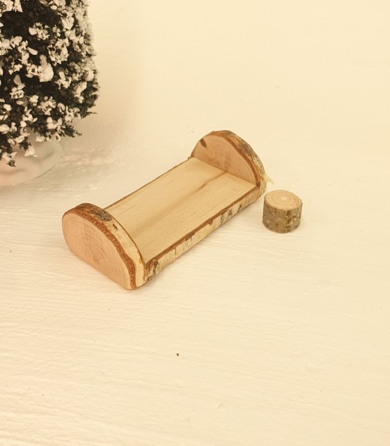 Miniatyr seng med nattbord - håndlaget i naturlig tre