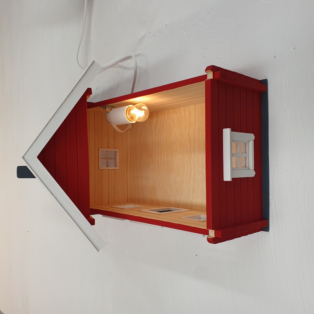 Laftet nissehus med lys - håndlaget av Vassbø Design