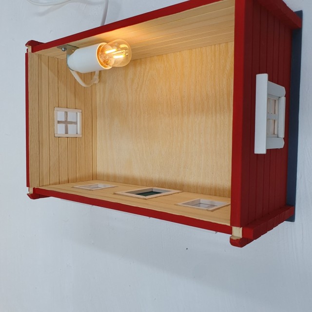 Huset har innebygt elektrisk lys så her trenger en ikke å tenke på batteribytte.
