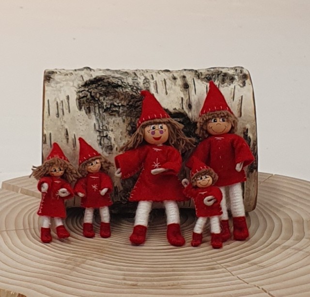 Nissene er laget av : filt, garn, piperenser og trehode.