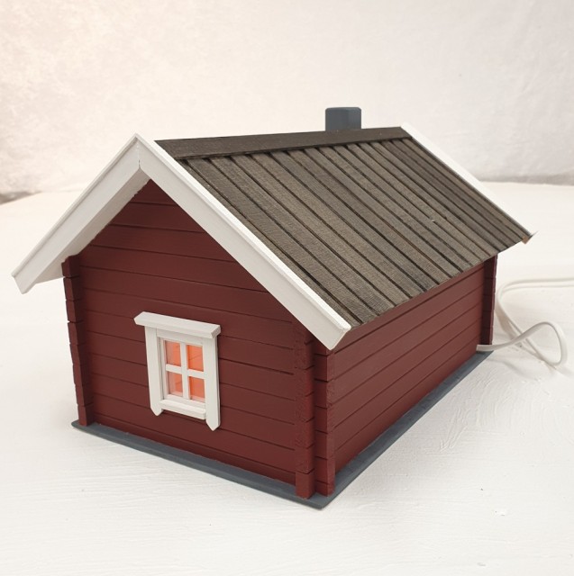 Laftet nissehus med lys - håndlaget av Vassbø Design